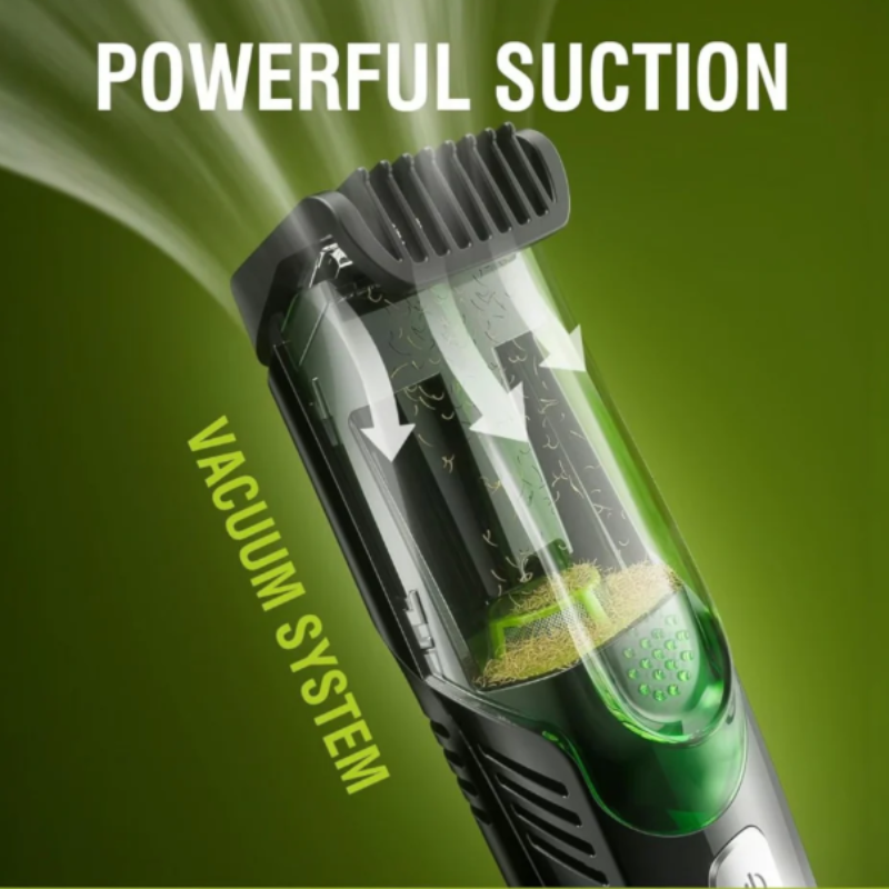 Trim your beard with built-in vacuum technology that captures 99% of hair before it hits the sink. Professional grooming without the expensive barber visits.